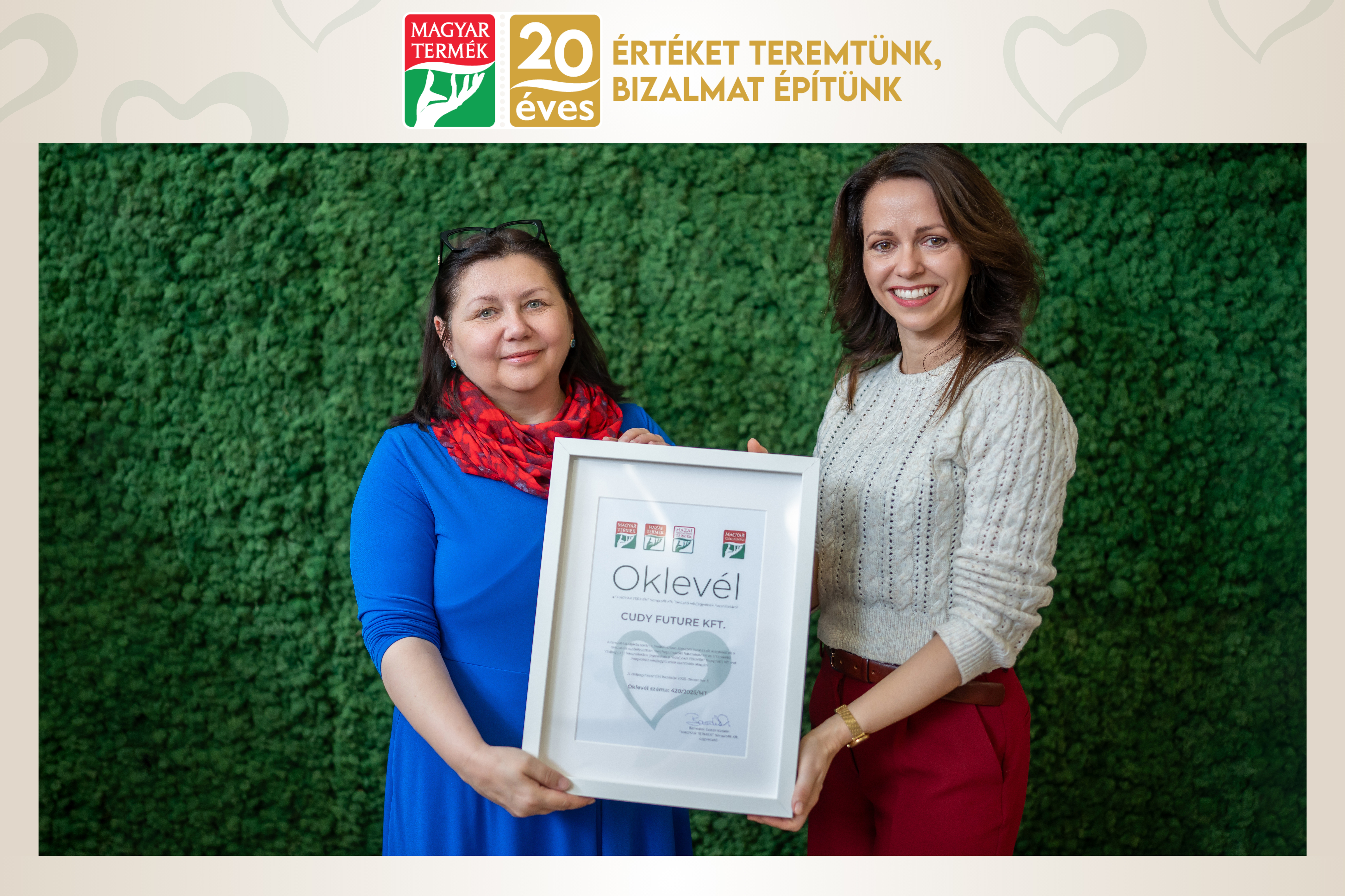 Cudy Future Kft. – az oklevelet átvette: Kulcsár Ildikó, ügyvezető