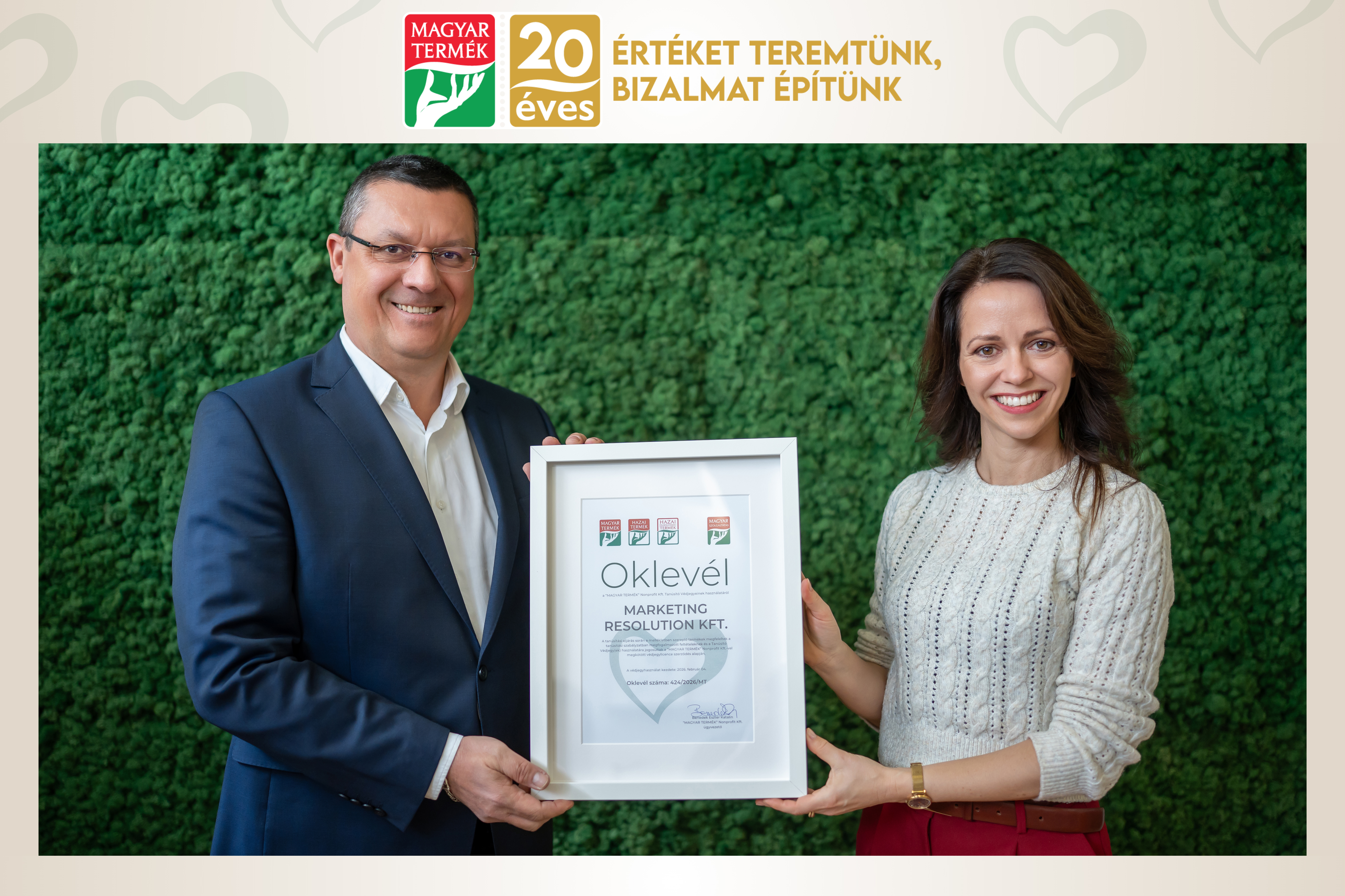 Marketing Resolution Kft. – az oklevelet átvette: Kui János, ügyvezető
